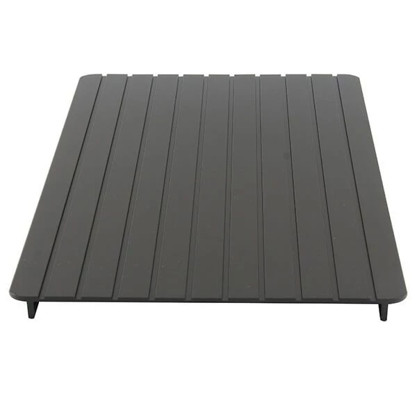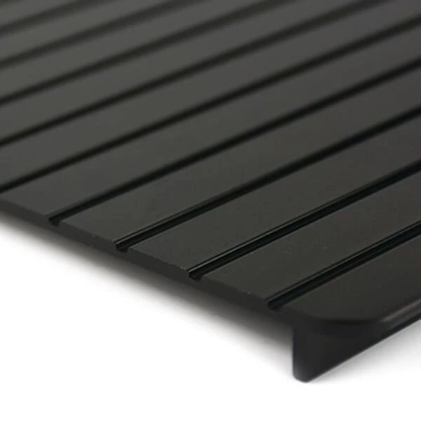 The groves on the surface allow moisture to drain away and the aluminium helps to defrost the food quicker.