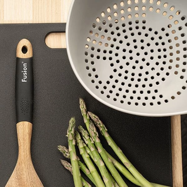 This Fusion jug and colander set is ideal for everyday use. The white colander features a large handle, this makes it easy to drain excess water from food and then to serve. The grey measuring jug also features a large handle for a firm grip when measuring and mixing ingredients.