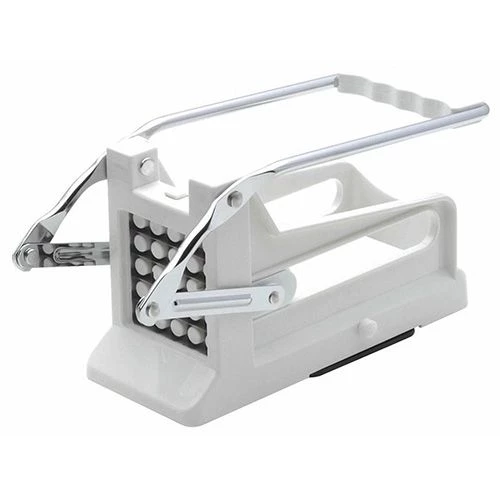 Cuts potatoes into chips in seconds! This handy potato chipper is also ideal for making carrot and other vegetable strips for crudités. Includes two sizes of blades for making small and large sizes, with replacement high quality stainless steel blades also available. Simple to use, just choose the blade, peel the potato or vegetable, place in the chipper and pull the lever arm to produce the chips. The suction base creates a firm grip while in use and all items are removable for easy cleaning.