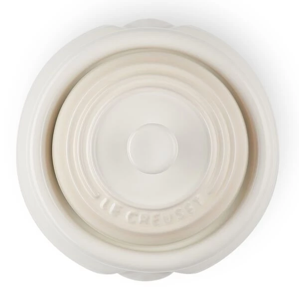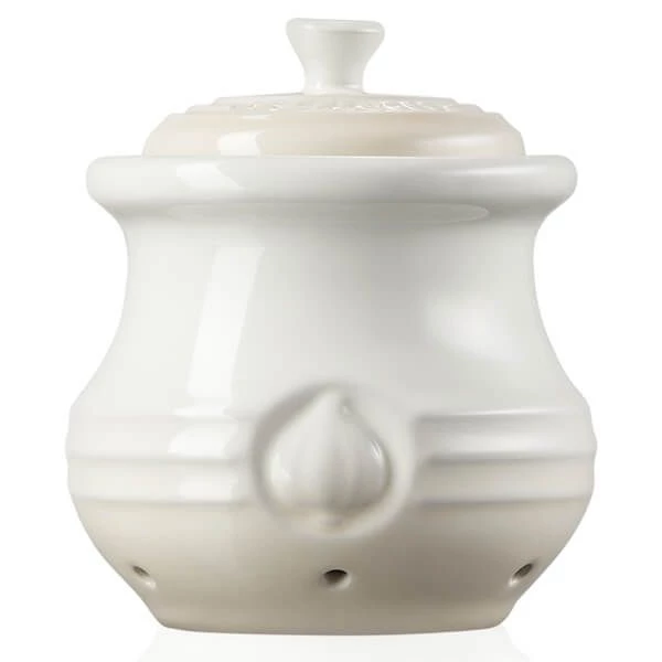 This Le Creuset Meringue Stoneware Garlic Keeper is designed to provide an ideal environment for storing garlic heads and cloves. Holding three to four garlic bulbs at a time, it features small vents around the base to keep air inside the jar dry. The lid fits securely and is designed to prevent light from entering and odours from escaping.