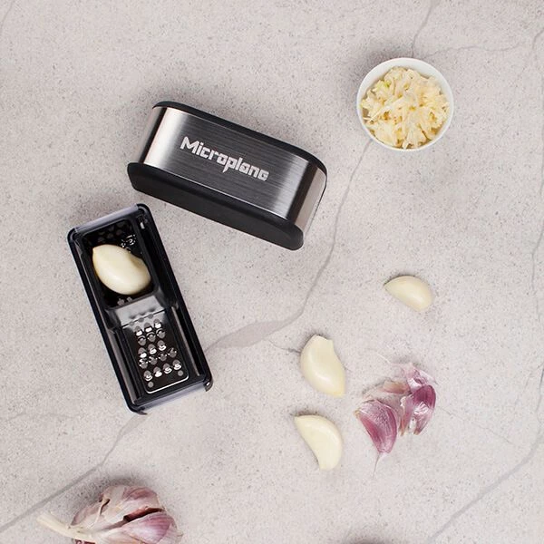 The Microplane Stainless Steel Garlic Cutter has a long lasting ultra sharp stainless steel blade and cuts with a simple back and forth motion.