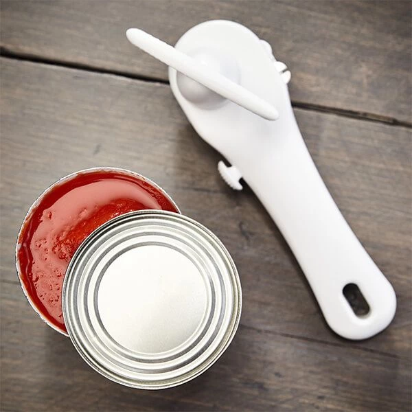 This Stellar Safety Can Opener is simple and easy to use, it leaves no sharp edges and both the can and the lid are rounded to a soft edge, for safe handling. This safety can opener is suitable for right and left handed use. No more trying to find the right angle or edge to place the can opener, you simply locate on the top edge and start winding, the mechanism will automatically find the edge and start cutting. Supplied with a Stellar lifetime guarantee.
